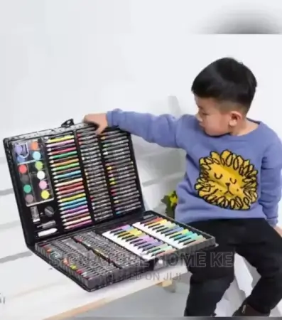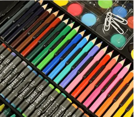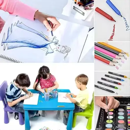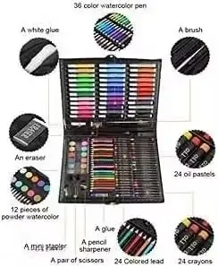 150-piece kids’ coloring kit: markers, crayons, pencils, oil pastels, watercolors, brush, palette, scissors, eraser, pencil, ruler, sponge, glue, ca…