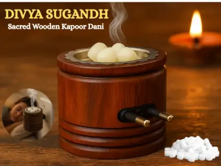 Experience the aroma of Divya Sughand Electric Kapoor Dani, a handcrafted wooden camphor diffuser made from pure Sheesham wood. Whether you need a Kapur dani, kapoor dhoop dani, or a ceramic kapoor dani, this elegant unit works as all in one.