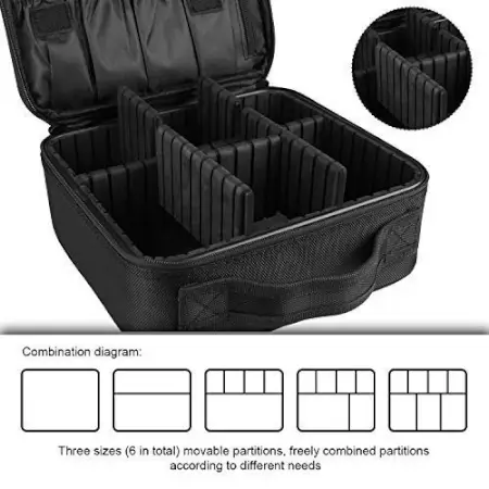 🌠 UNIQUE AND EXQUISITE DESIGN ?Main compartment includes 6 adjustable EVA dividers,You can design yourself internal compartments by the adjustable padded dividers and separate and organize all of your cosmetics, makeup tools, toiletry jewelry;Makeup brushes holder with plastic cover, not afraid of the residual cosmetics on the brush.